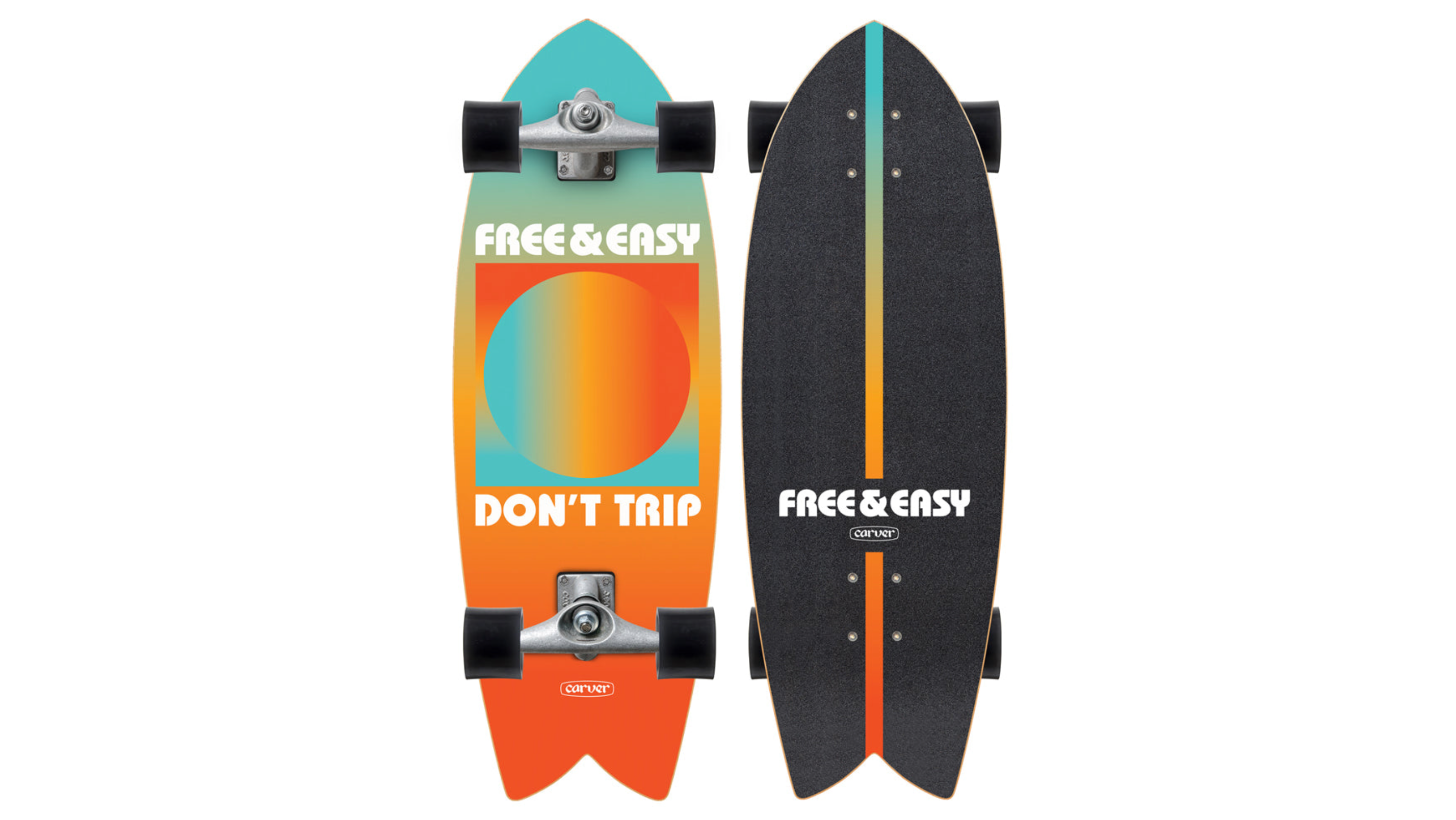 The Carver x Free & Easy Gradient Sun blends retro vibes with modern flow. Featuring a bold sunset gradient and minimalist "Don't Trip" mantra, it's designed for effortless carving and laid-back cruising.